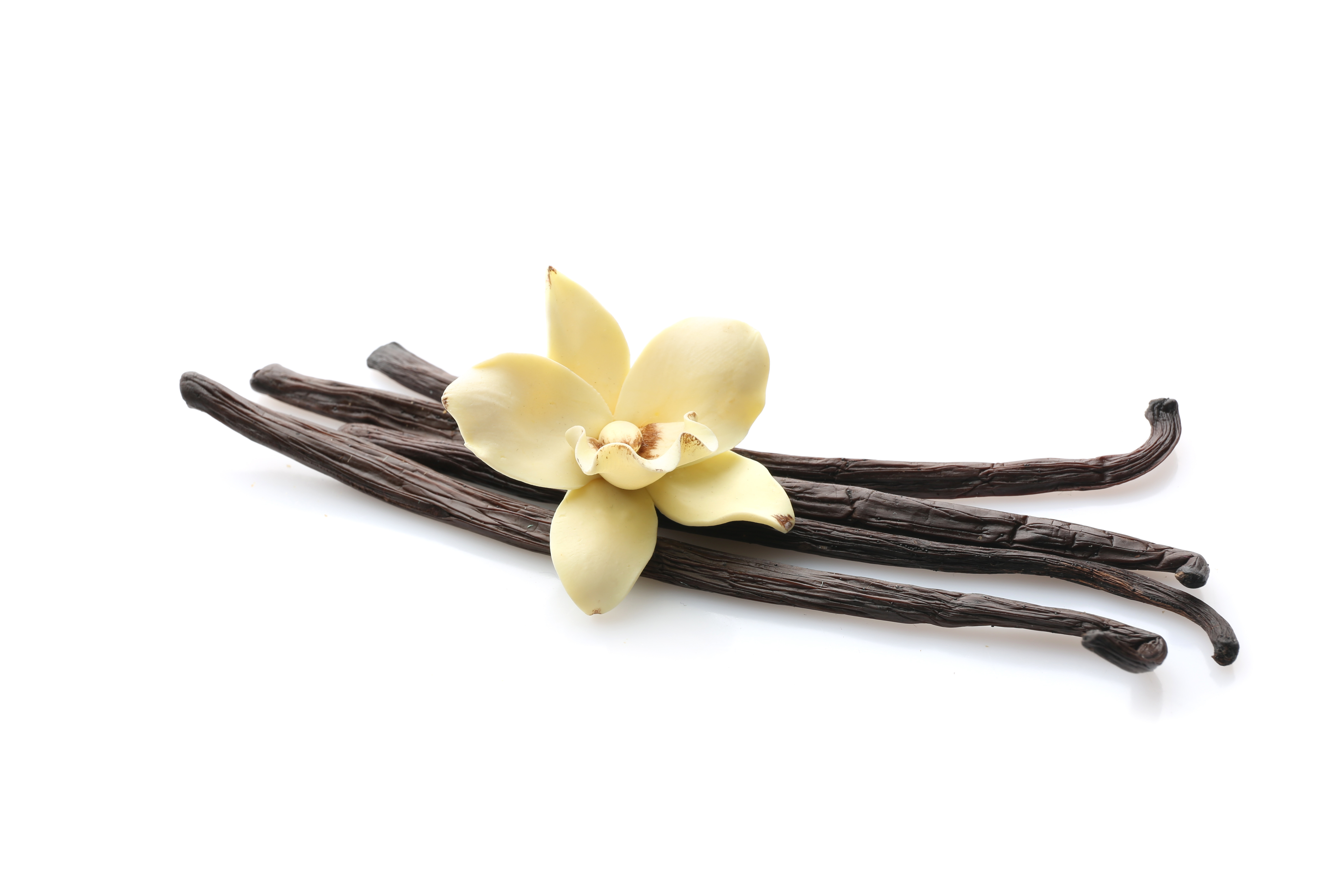 Aromatic vanilla sticks on white background